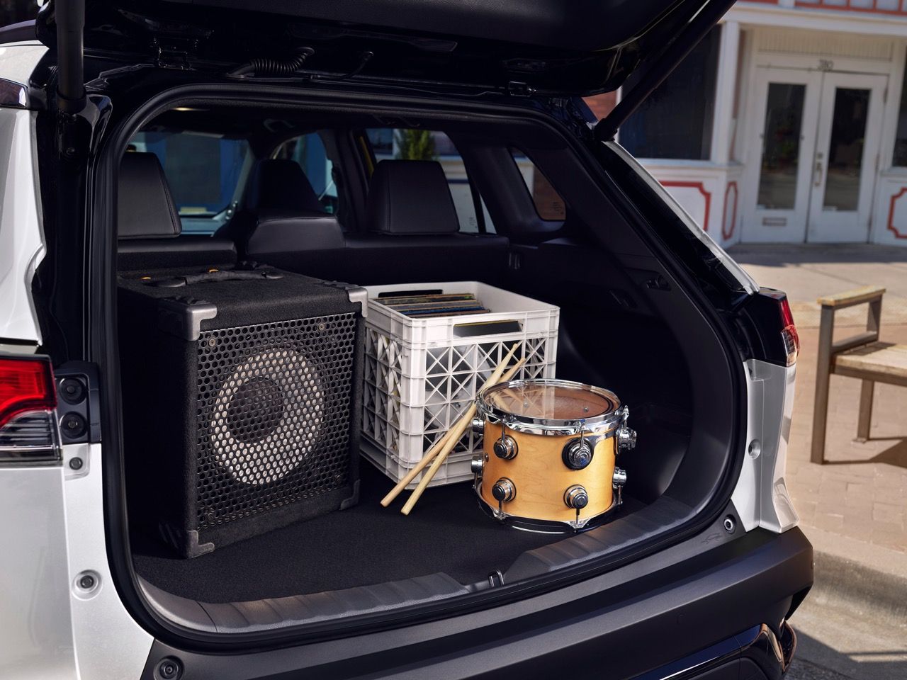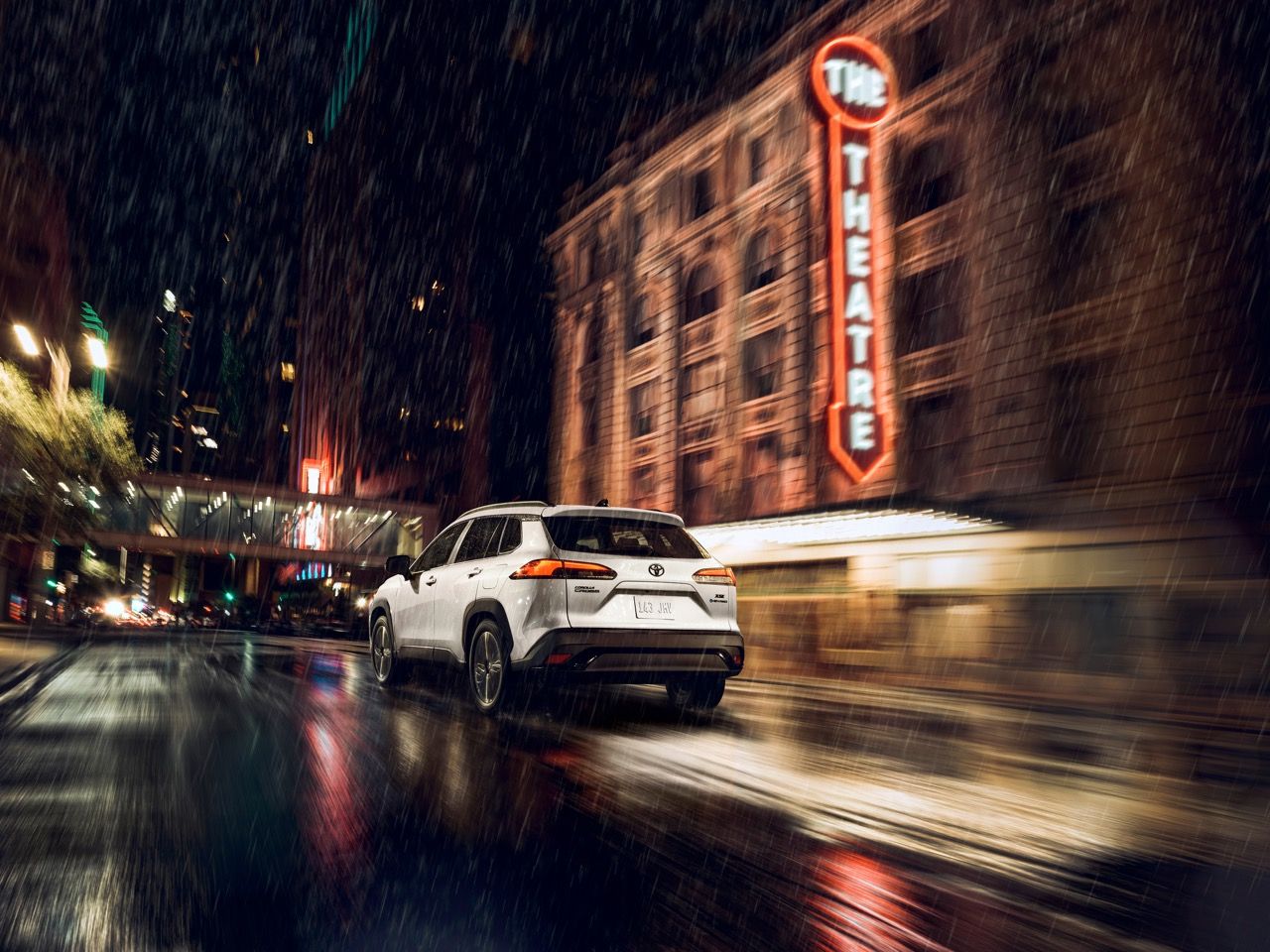 ด้านหลัง พื้นที่เก็บของขยายได้เต็มที่ด้วยเบาะหลังแบบพับแยก 60/40 รุ่น XLE และ XSE มีที่วางแขนตรงกลางพร้อมที่วางแก้วน้ำเพิ่มเติมอีก 2 ที่ พื้นที่เก็บสัมภาระถูกปรับเพิ่มความสะดวกยิ่งขึ้น Corolla Cross จึงมาพร้อมประตูฝาท้ายไฟฟ้าที่ปรับองศาความสูงของฝาท้ายได้  ราวหลังคาพร้อมคานขวาง ขายึดสำหรับจักรยาน ตะขอสำหรับลากจูง พรมปูพื้น