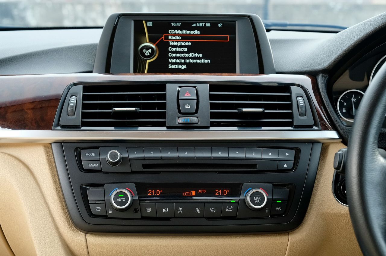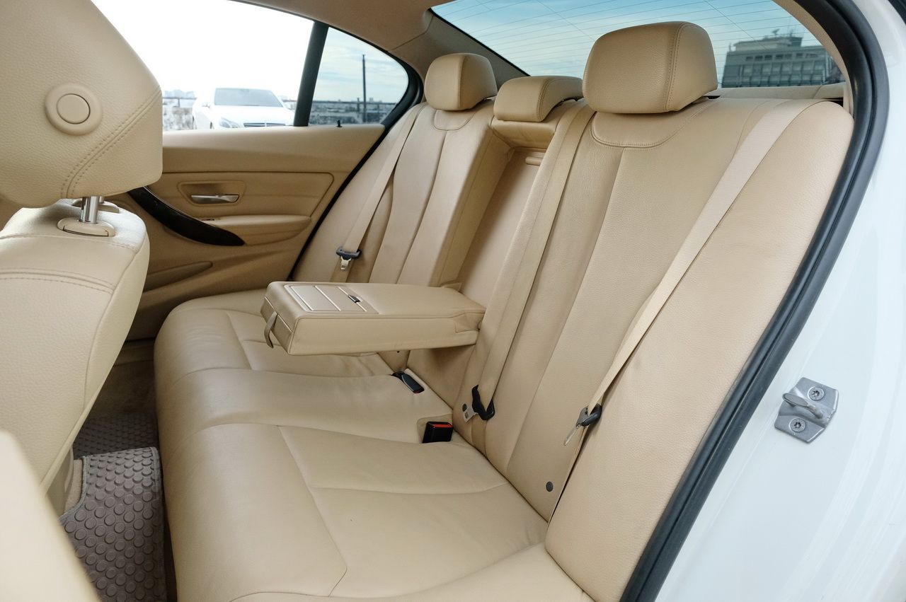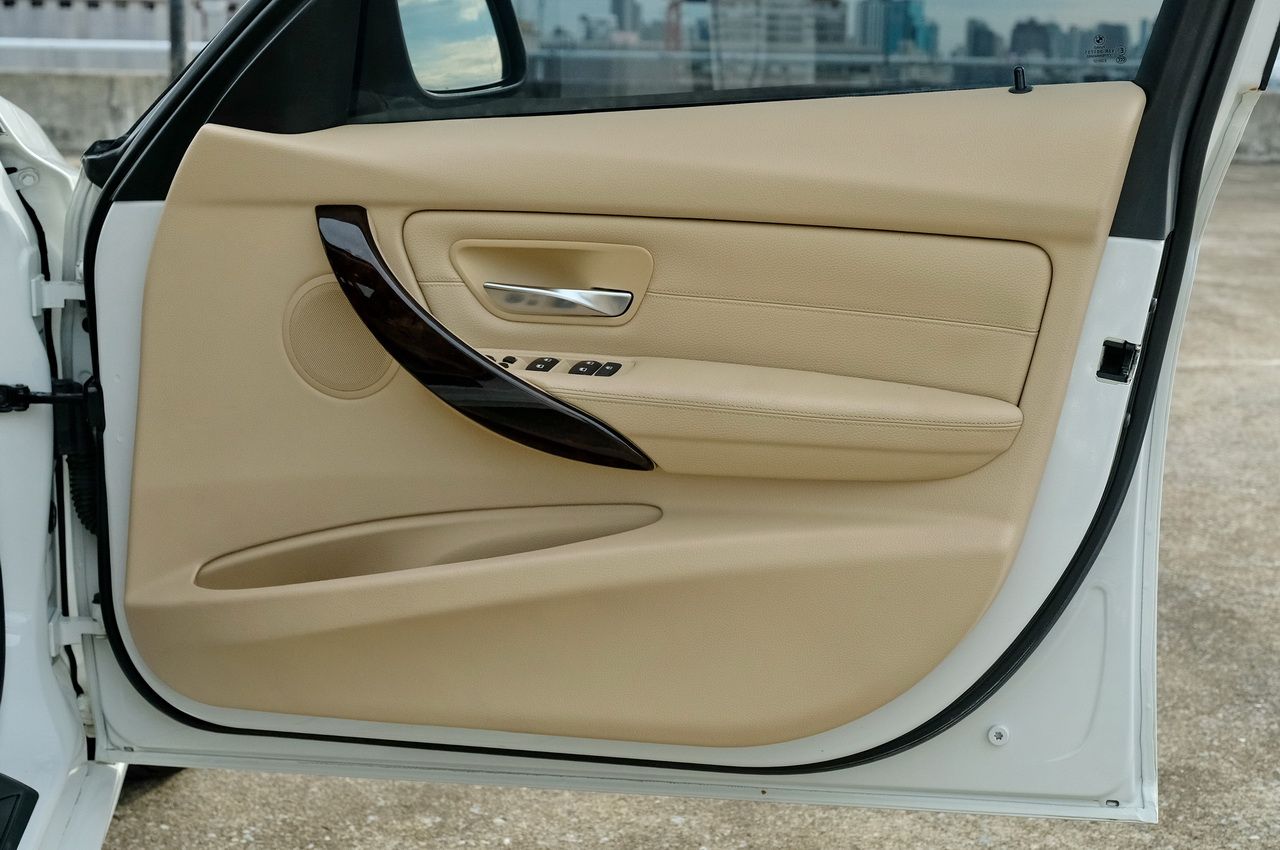 เรามาพูดถึงความ “BASE” กันต่อ ว่าในราคาที่หายจากรุ่น Luxury ไปราว 5-6 แสนบาทนั้น BMW หยิบอะไรออกไปบ้าง ภายนอกของรถรุ่น BASE นั้น เริ่มจากบอดี้ที่คล้ายรุ่น 320i SPORT แต่ตัดโครเมียมบางจุดออกไป จากนั้นก็เอาไฟหน้า Bi-Xenon ออก ตรงนี้ไม่ต้องใช้ตาเหยี่ยวก็สังเกตได้ครับ F30 รุ่นย่อยอื่นๆ นั้น คุณจ้องตาเขาเข้าไปจะเห็นลูกกลมๆ แบบ Projector แต่รุ่น BASE จะเห็นตาเพชร ซึ่งก็คือจานสะท้อนแสงกับไฟหน้าฮาโลเจนแบบโคตรดั้งเดิม ซึ่ง ณ ปี 2013 รถเกินสองล้านเปิดไฟมาเป็นหลอดเหลือง ติ่งรถญี่ปุ่นขำตายแหละ แต่ยังดีว่ามีไฟตัดหมอกหน้า/หลังมาให้นะครับ ไฟหน้าฮาโลเจนเปลี่ยนหลอดไม่แพง เสียยกโคมก็ราคาถูกกว่า ดีในแง่ซ่อมบำรุงแต่อวดใครไม่ได้ ถ้าอยากอวด เอาของตัวท็อปๆ มาแปลงใส่เอาภายหลังได้ครับ อ้อ แล้วก็..รถรุ่น BASE จะมีแต่สีขาวกับดำ ภายในมีแต่สีเบจเพียงเท่านั้นนะครับ
