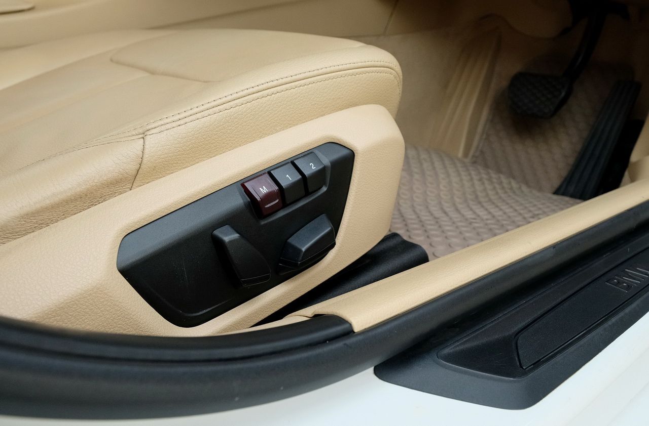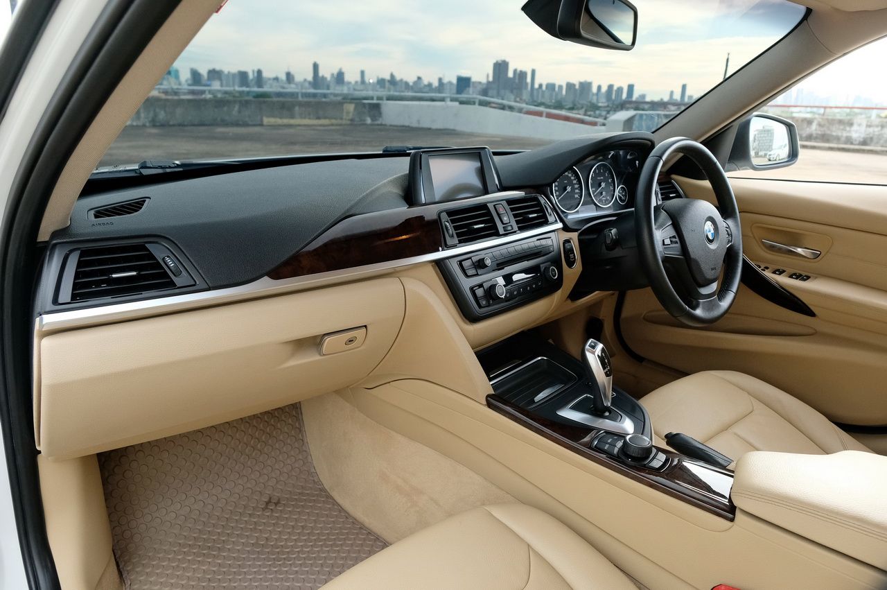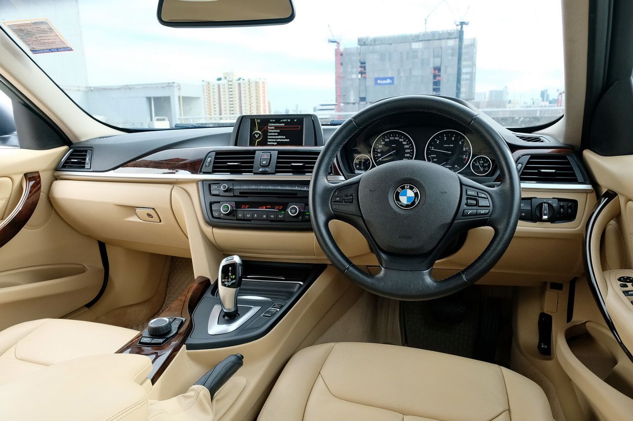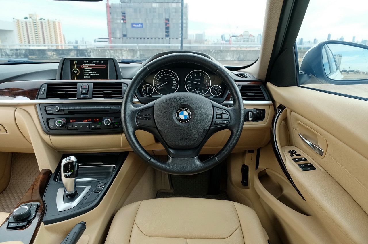ภายในรถ อย่างที่บอก มีสีเดียวคือสีเบจ เบาะนั่งแบบมาตรฐานทรงคล้ายรุ่น Luxury ที่ไม่ได้เน้นมาดสปอร์ต และไม่ได้มีส่วนรองน่องที่สามารถปรับยืดออกได้ แต่อย่างน้อยก็ยังได้เบาะปรับไฟฟ้ามาปลอบใจในคู่หน้า พร้อมทั้งระบบความจำตำแหน่งเบาะข้างคนขับ การตกแต่งภายใน จะมีโทนเรียบร้อย คล้ายเอารุ่น 320i Luxury มาตัดบางส่วนออก