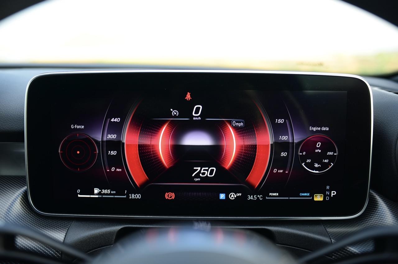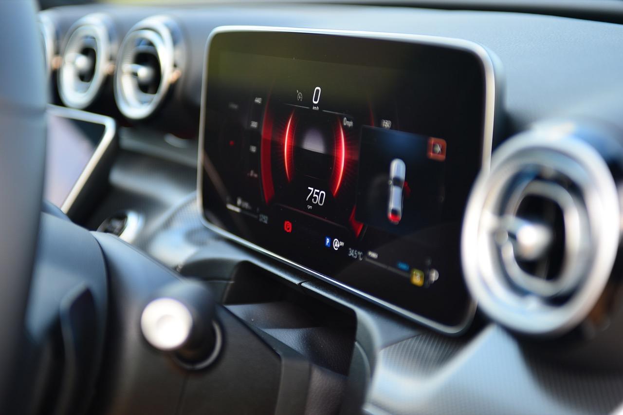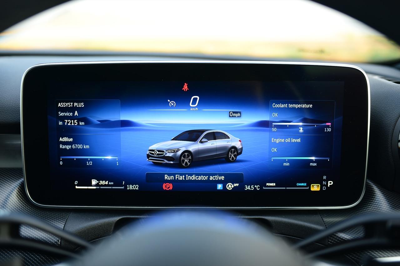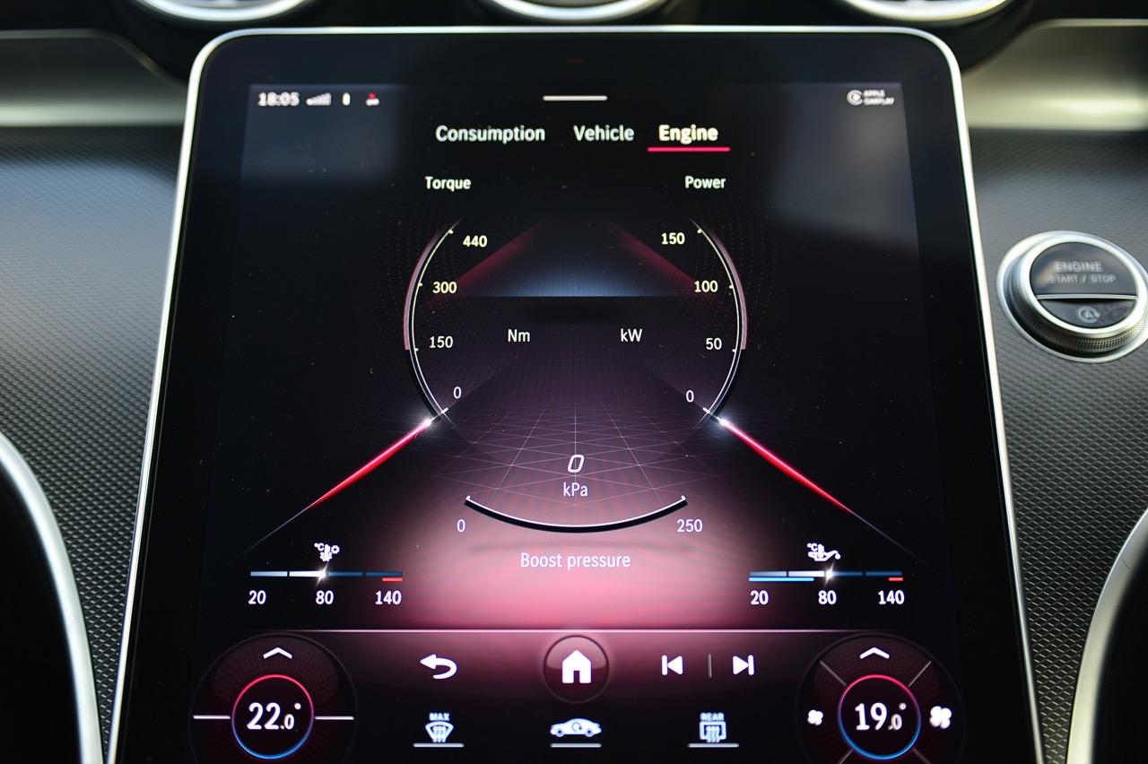 ระบบดิจิทัลยุคใหม่ ปรากฏอยู่ในจอแสดงผลส่วนกลางที่คล้ายกับ New S-Class จอกลางแนวตั้ง สามารถควบคุมและแสดงผลการทำงานของระบบต่างๆ การปรับตั้งและเชื่อมต่อฯ ผ่านการสั่งงานบนหน้าจอระบบสัมผัสคุณภาพสูง การวางจอภาพในแนวตั้งทำให้มองเห็นได้ชัดเจนและเกิดประโยชน์สูงสุดเมื่อใช้ระบบนำทางด้วยดาวเทียมหรือกล้องมองรอบคัน หน้าจอสัมผัสออกแบบให้ดูเหมือนลอยอยู่เหนือแดชบอร์ด เช่นเดียวกับชุดแดชบอร์ดที่หรูหรา หน้าจอมอนิเตอร์กลางปรับองศาให้เอียงเล็กน้อยไปทางคนขับ จอแสดงผลส่วนกลางขนาด 11.9 นิ้ว เป็นอุปกรณ์มาตรฐานของ New C-Class ทุกรุ่นอีกด้วย จอแสดงผลส่วนกลางยังมีการตกแต่งที่ลงลึกในด้านรายละเอียด เช่น การล้อมรอบจอภาพด้วยสีดำเงาวาวและขอบสีเงินที่ตัดกับสีดำและขยายไปยังคอนโซลกลางได้อย่างลงตัว รายละเอียดการตกแต่งที่ประณีต การตัดขอบด้วยโครเมียมคุณภาพสูง ช่วยให้ห้องโดยสารของ C220d AMG Dynamic น่ามองมากยิ่งขึ้นและเหมือนกับห้องโดยสารของ New S-Class ที่ถูกย่อสัดส่วน