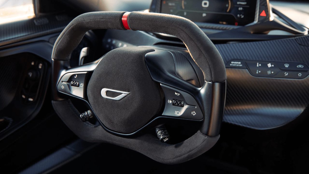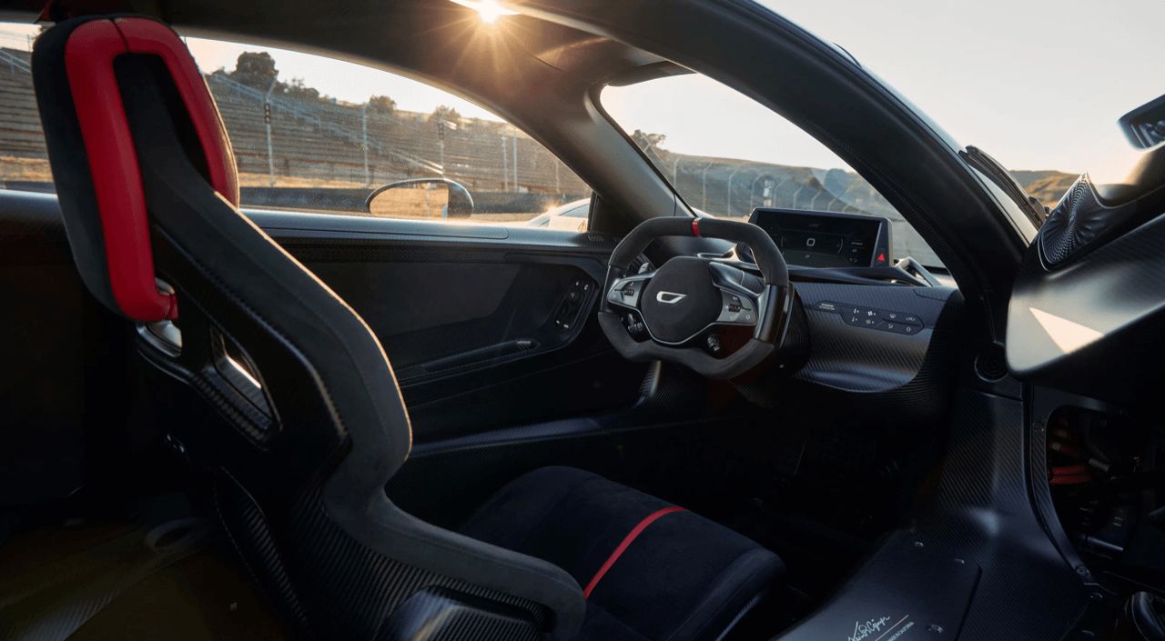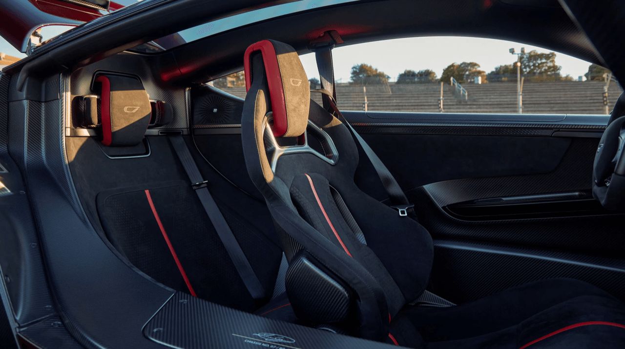 บานประตูของ 21C ออกแบบให้เข้า – ออกจากภายในได้ง่ายและสะดวกกว่าห้องโดยสารที่คับแคบของ Aston Martin Valkyrie ตำแหน่งนั่งห่างจากซุ้มล้อจนไม่ได้บดบังทัศนียภาพข้างหน้า รูปสี่เหลี่ยมขนมเปียกปูนขนาดเล็ก หน้าจอใสเรียบง่ายที่อยู่ด้านหลัง ติดตั้งอยู่บนโครงสร้างที่พิมพ์ด้วยเครื่องพิมพ์ 3 มิติ เหมาะสมอย่างยิ่งที่จะรู้สึกเหมือนอยู่ด้านหน้าของวัตถุที่พุ่งทะยานด้วยความเร็วสูง แนวคิดเครื่องบินเจ็ทอาจดูเหมือนสิ่งที่เด็กเจ็ดขวบเป็นคนคิดค้นขึ้นมาเอง แต่ซูเปอร์คาร์และไฮเปอร์คาร์ถูกออกแบบมาเพื่อดึงความเป็นเด็กในตัวเราทุกคนอยู่แล้ว โดยเฉพาะบรรดามหาเศรษฐีที่ยอมควักเงินจำนวนมากเพื่อแลกกับของเล่นที่เคยใฝ่ฝันถึงในวัยเด็ก