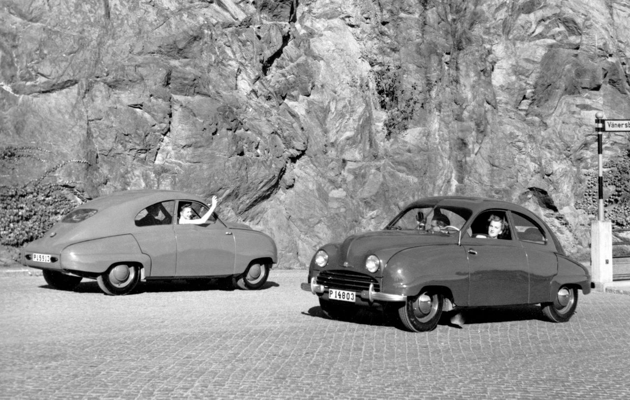 คุณทราบหรือไม่ว่า Saab ใช้วิศวกรแค่ 16-18 คนในการออกแบบและสร้างรถรุ่นนี้ วิศวกรทุกคน ไม่เคยมีความรู้หรือทักษะในการออกแบบรถยนต์มาก่อน และมีแค่ 2 คนเท่านั้นที่มีใบขับขี่ ชื่อรุ่นรถ “92” นั้นก็มีที่มาอันแสนจะง่ายดายว่า ก็ก่อนหน้านี้ Saab เคยสร้างเครื่องบินใบพัดฝึกบินรุ่น “91” ก็ไม่ต้องคิดมาก เอาเลข 92 มาใช้นั่นแหละจบๆ ฟังดูเหมือนมักง่าย แต่นั่นคือจุดกำเนิด DNA สไตล์อินดี้ที่เป็นตัวตนของ Saab ถึงแม้ ณ ปี 1945 นั้น มีบริษัทรถยนต์หลายเจ้าสร้างรถขายมาก่อนแล้ว Saab เป็นบริษัทแรกที่เอาวิศวกรเครื่องบินมาสร้างรถ ออกแบบบอดี้ให้มีความลู่ลมเหนือใคร Saab 92 ที่ออกขายในปี 1949 นั้น มีค่าสัมประสิทธิ์แรงเสียดทาน = 0.30 นะครับ เมื่อคูณพื้นที่หน้าตัดของรถขนาดเล็กเข้าไปแล้ว ก็ถือว่าลู่ลมมากพอๆ กับเบนซ์ 190E ที่เกิดหลังจากนั้น 33 ปี การสร้างตัวถังก็ปั๊มจากเหล็กชิ้นเดียวไร้รอยต่อ แล้วค่อยมาเจาะช่องใส่ประตูใส่กระจก