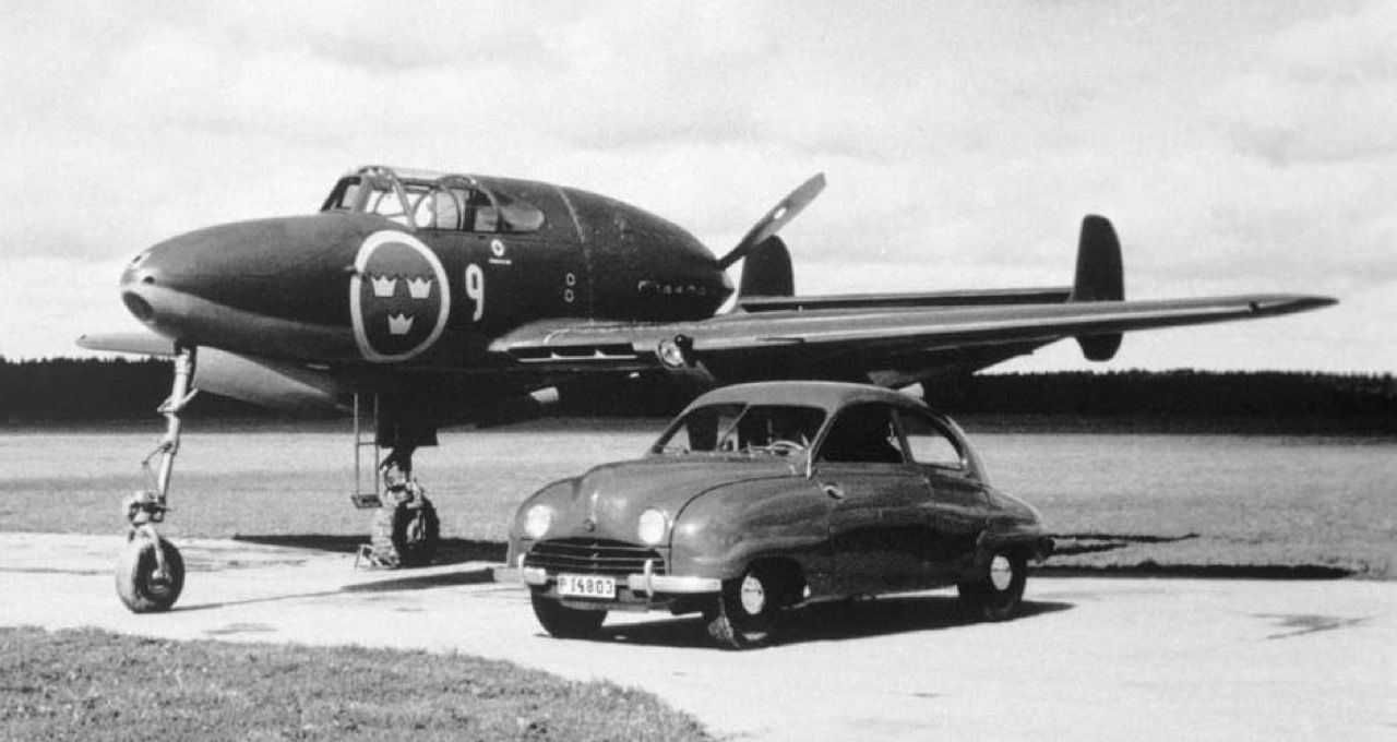 พอ อดอล์ฟ ฮิตเลอร์ แพ้แล้วฆ่าตัวตายไปในเดือนเมษายน 1945 เยอรมนี แพ้สงคราม โรงงานที่เคยใช้ผลิตเครื่องบินเพื่อการสงครามก็ว้าเหว่ บริษัทก็เลยต้องหาทางผลิตอะไรที่มันเป็นเหล็กแก้เหงามือ และเพื่อสร้างความยั่งยืนทางการเงินให้ตัวเองในภายหน้า พวกเขาเลือกที่จะผลิตรถยนต์โดยปรับโรงงานที่เมือง Trollhattan จนสามารถผลิตรถยนต์ได้ แล้วก็วิจัยสร้างรถรุ่นแรกออกมา คือ Saab 92