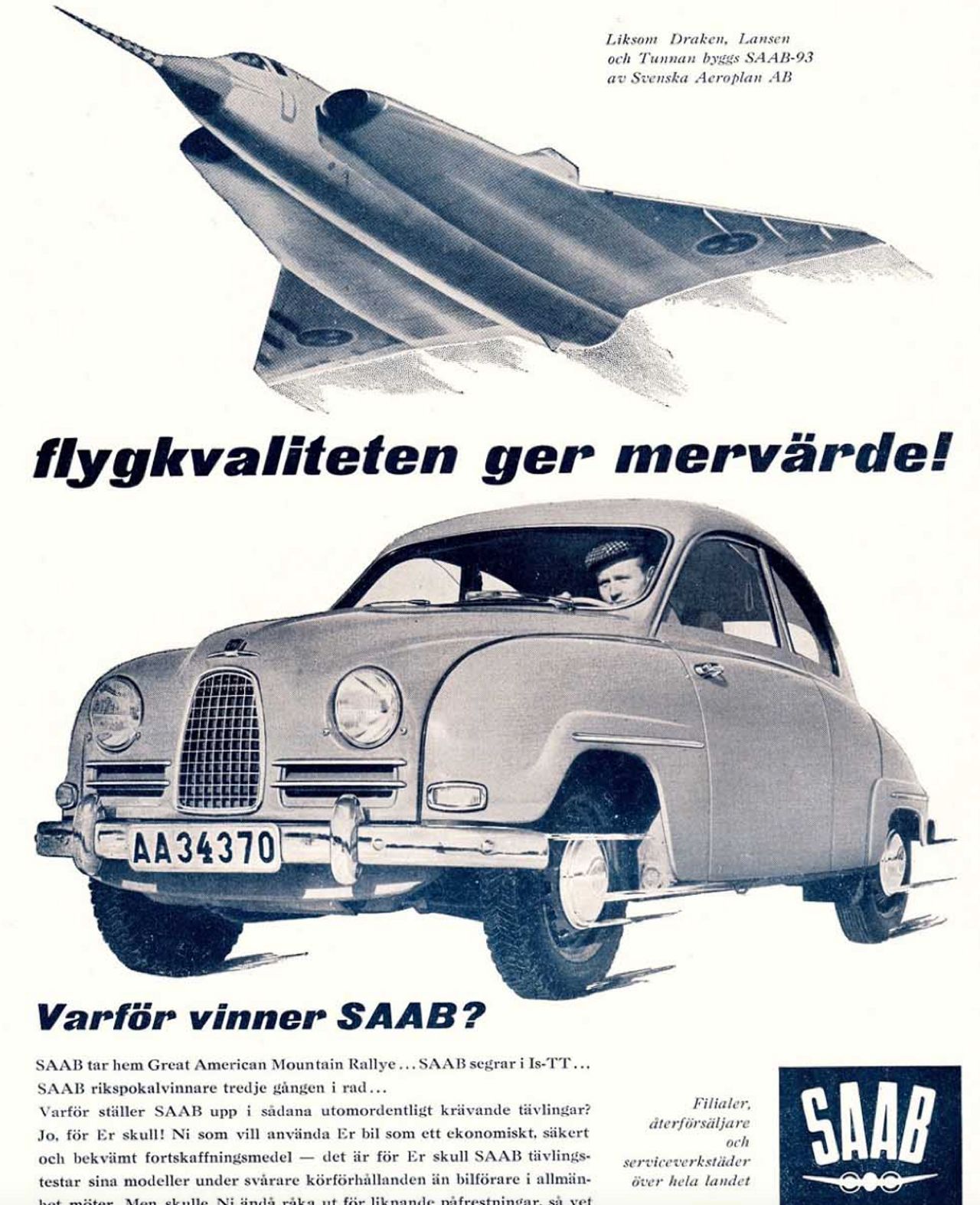 ชื่อของ Saab นั้น ย่อมาจากคำว่า Svenska Aeroplan AktieBolaget ซึ่งแปลตรงตัวว่า “บริษัท อากาศยานสวีเดน” เกิดขึ้นตั้งแต่ปี ค.ศ. 1937 จากเดิมเป็นบริษัทผลิตเครื่องบินเล็กๆ ที่ผลิตเครื่องบินให้เยอรมนี เพราะหลังสงครามโลกครั้งที่ 1 ซึ่งเยอรมนีเป็นฝ่ายแพ้นั้น เขาก็โดนจับเซ็นสนธิสัญญาแวร์ซายซึ่งมีข้อบังคับจำกัดหลายอย่างรวมถึงห้ามชาวเยอรมันผลิตเครื่องบินเองภายในประเทศด้วย เยอรมันก็ไม่โง่นี่ครับ เห็นสวีเดนมีช่างเก่ง มีเหล็กดี ก็จ้างทำเสียเลย แต่พอช่วงฮิตเลอร์เริ่มเรืองอำนาจ สวีเดนมองเกมขาดว่าตาหนวดนี่จะเป็นภัยโลกในภายหน้า ก็เริ่มหาทางสร้างอาวุธของตนเองใช้ บริษัทอากาศยานสวีเดนเกิดขึ้นมาด้วยเหตุนี้ ถึงแม้สวีเดนจะเป็นกลาง แต่ก็ต้องมีของพกไว้ให้อุ่นใจเผื่อตาหนวดแกลั่นส่งกำลังมารังควาญ